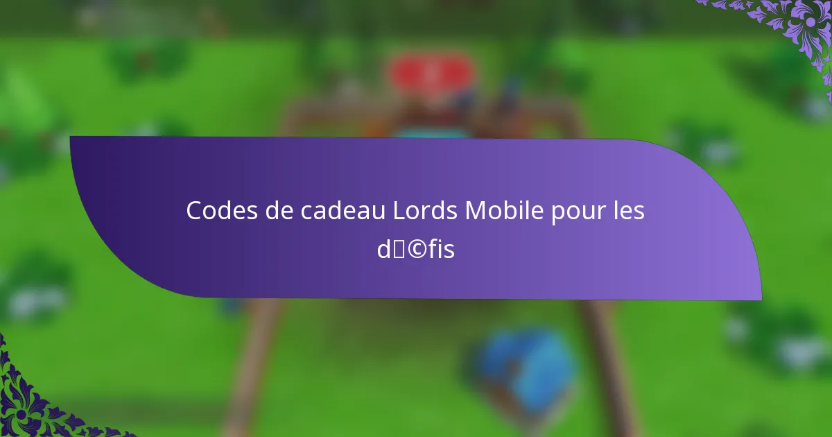 Les codes cadeaux dans Lords Mobile peuvent améliorer divers défis en fournissant aux joueurs des récompenses précieuses. Ces codes peuvent être utilisés pour débloquer des bonus qui aident à compléter les défis plus efficacement et efficacement.