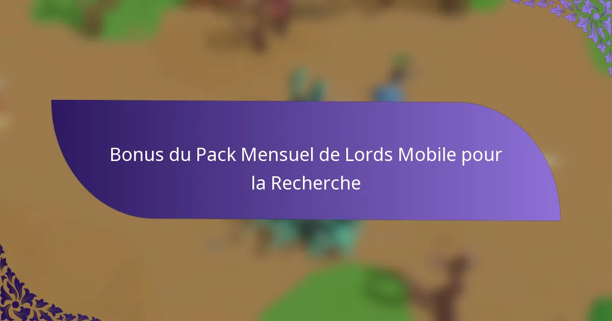 Quels sont les bonus du Pack Mensuel de Lords Mobile pour la recherche ?
